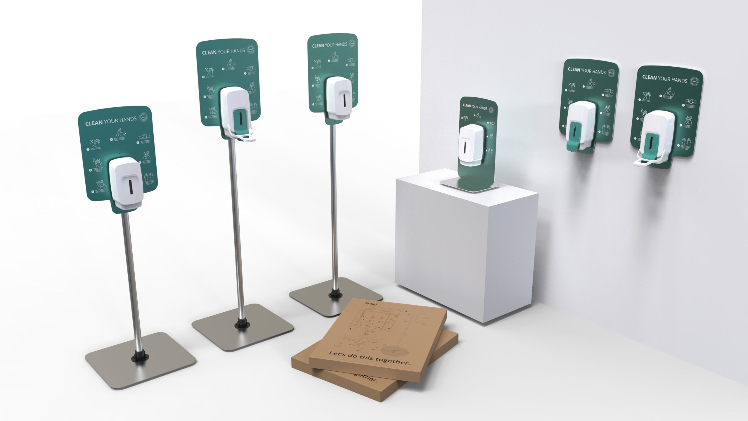 We already had experience with the development of soap and disinfectant dispensers. Many places still lacked a sufficient and easy solution for hand hygiene. In reaction to this we have put our heads together to work out a smart hand disinfection stand. The focus was to provide a sophisticated solution, which could also be ready for market introduction as soon as possible. By working together with a few suppliers in our network, we could start production very fast.